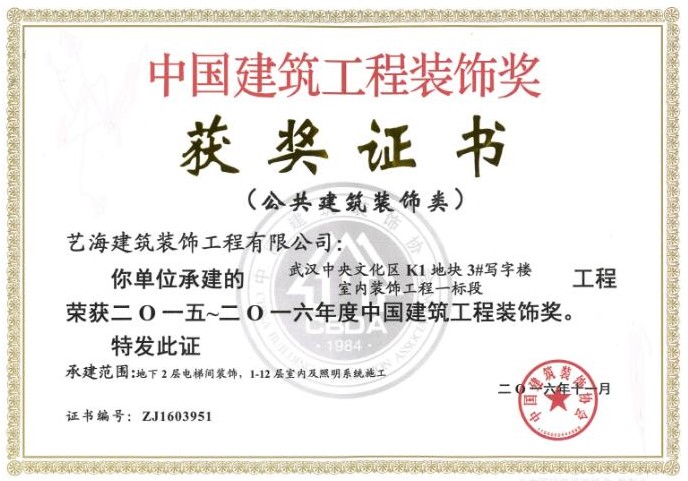 藝海建筑裝飾工程有限公司(簡稱“藝海裝飾”)成立于2001年,注冊資金5050萬元,具有建筑裝飾裝修工程專業(yè)承包一級、建筑幕墻工程專業(yè)承包一級、機電安裝工程專業(yè)承包二級、電子與智能化工程專業(yè)承包二級、消防設施工程專業(yè)承包二級、鋼結構工程專業(yè)承包二級、建筑工程施...詳細信息>>